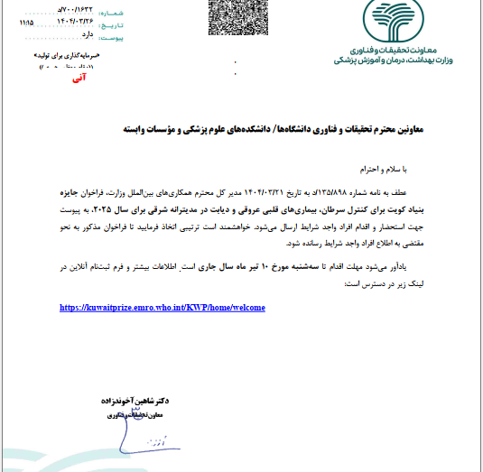 فراخوان جایزه بنیاد کویت برای کنترل سرطان، بیماریهای قلبی عروقی و دیابت در مدیترانه شرقی برای سال 2025